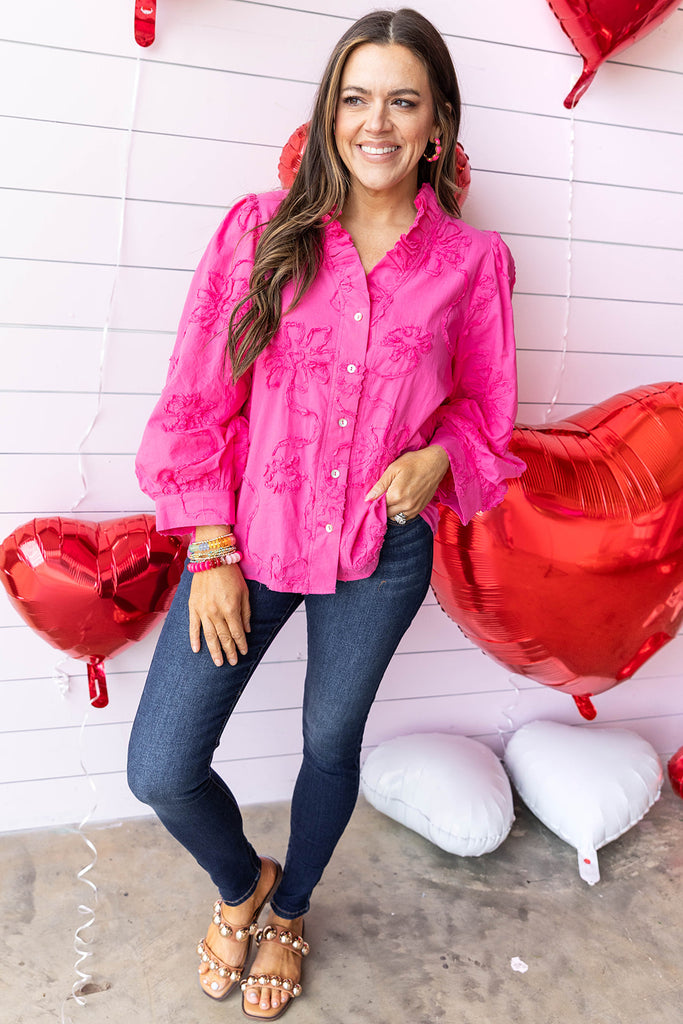 Poppy Petals Blouse - Hot Pink