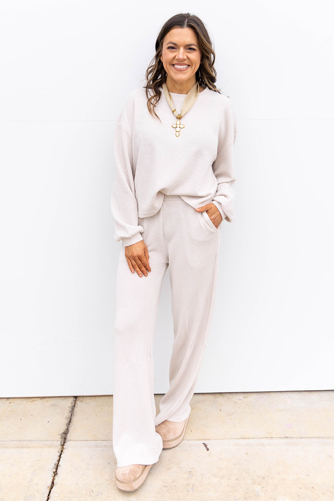 Step into timeless elegance with this chic ribbed set that hugs you in all the right ways. Classic French-inspired styling meets modern comfort—the perfect pairing for those days when you want to look put-together without trying too hard.