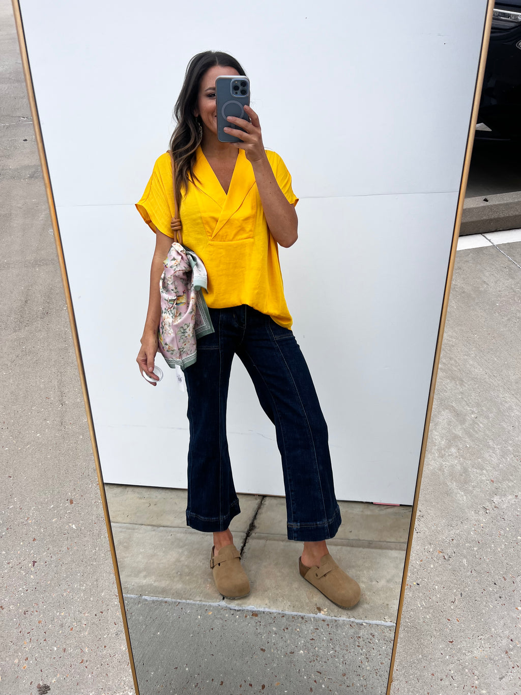 The French Navy High Rise Crop Denim by Mica is going to your favorite this fall. They are made for cool days and cooler weather. The wide leg and utility pockets give them a structured fit.