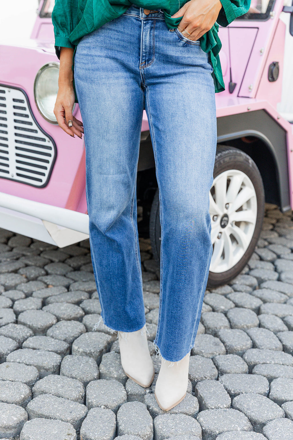 Meet your new favorite pair — The Everyday Straight-Leg Jeans. Designed with a timeless mid-wash finish and raw hem detail, these jeans deliver effortless style that goes with absolutely everything. The high-rise fit smooths and flatters, while the relaxed straight leg keeps things chic yet casual.