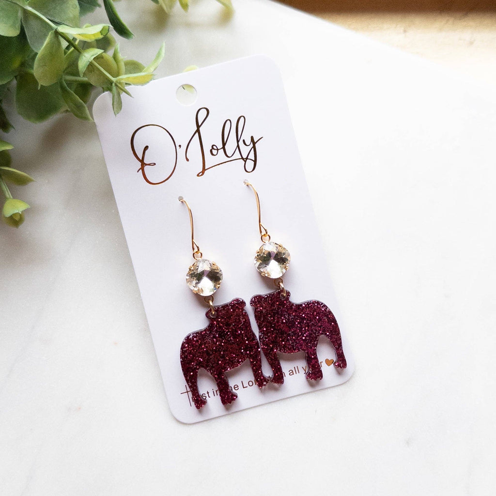 Maroon Glitter Acrylic Bulldog w/Clear Stone Approximately 2.5 inches
