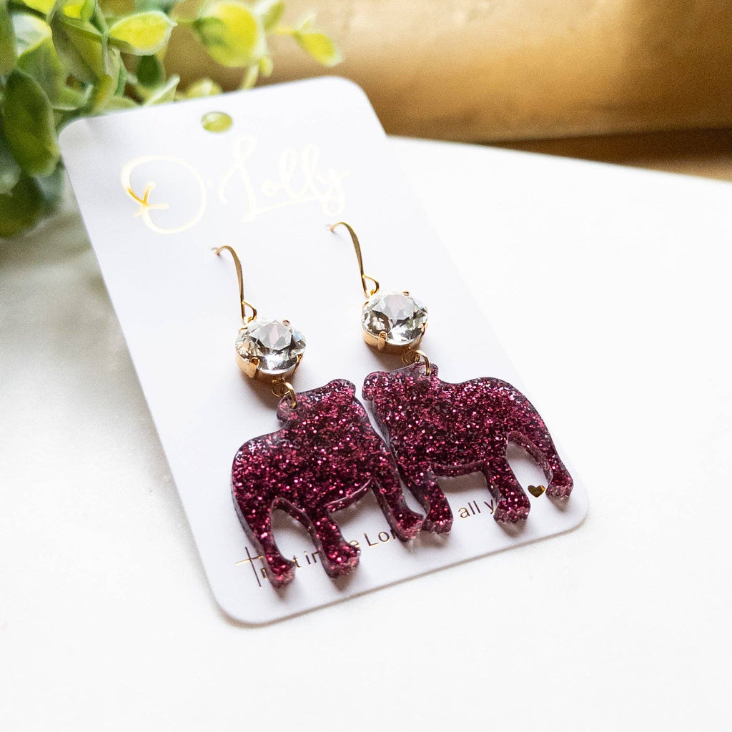 Maroon Glitter Acrylic Bulldog w/Clear Stone