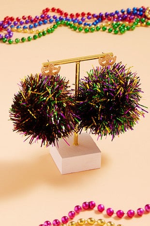 Pom Pom Mardi Gras Earrings