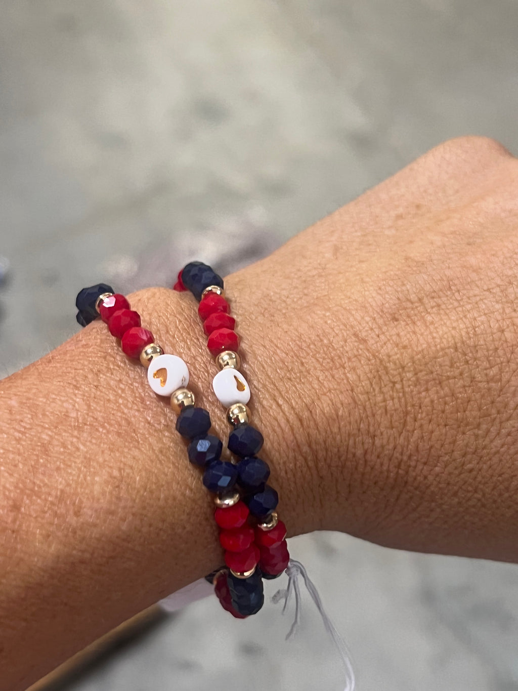 Our Maroon, Grey, White, Gold Rubber Disk Beaded Bracelet is a product by Jane Marie. This bracelet showcases maroon, grey, white, and gold rubber disks. It's a beaded bracelet that can be paired with various styles, making it an excellent addition to your fashion accessory collection.