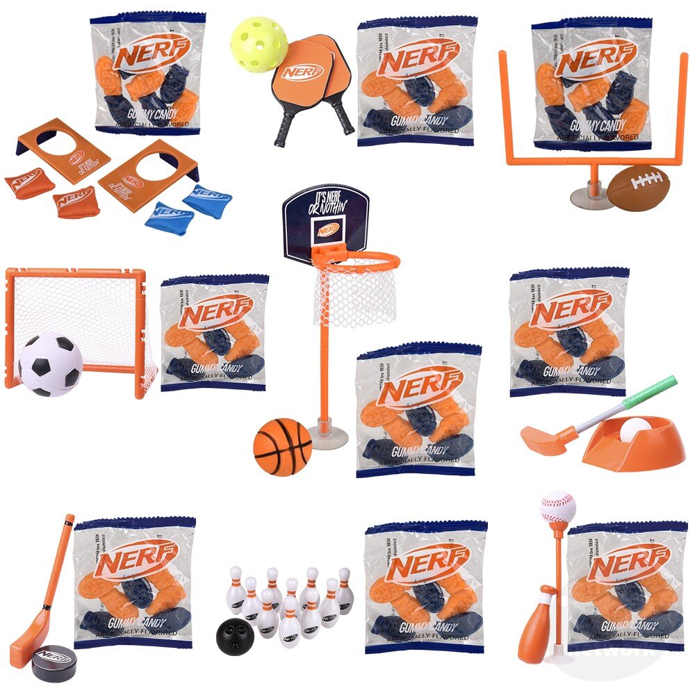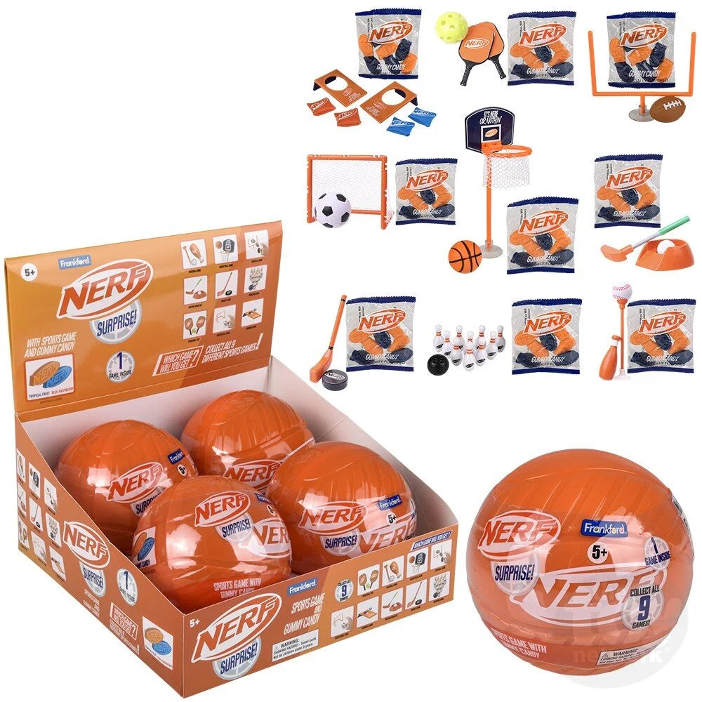This Nerf Surprise product contains gummy candy and one tabletop game to play anywhere. 9 different games to collect (Assortments vary)