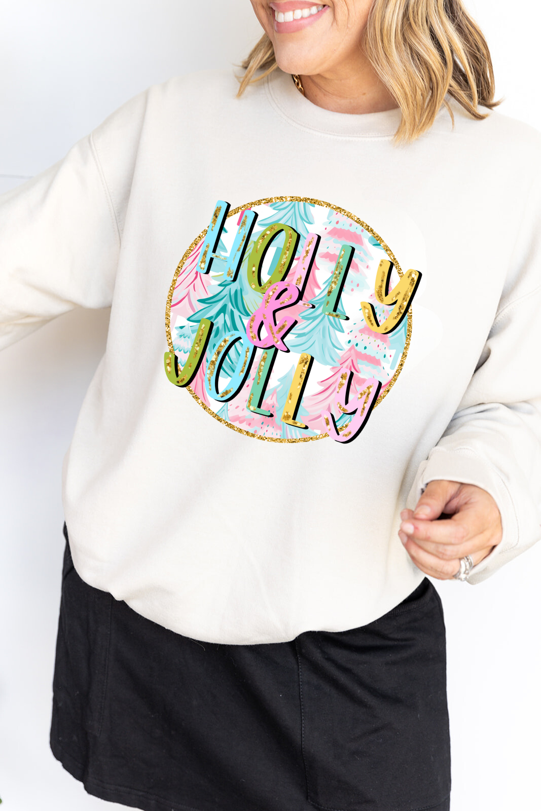 How fun and cute is this colorful Holly Jolly Sweatshirt