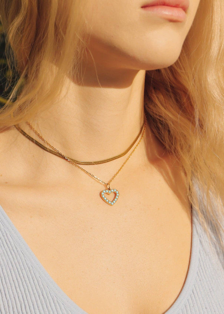 18K Gold PVD Stainless Steel Turquoise Stone Heart Charm: Gold / 15mm