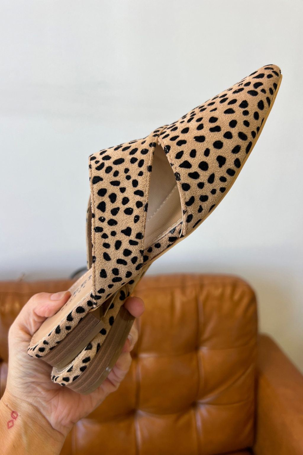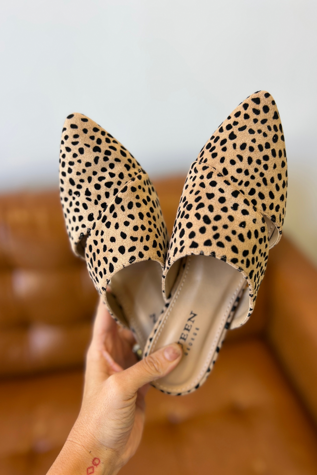 • Faux animal print mule
