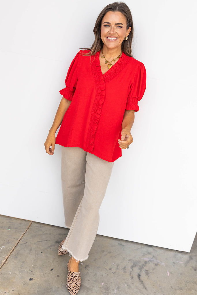 Right by the Ruffles Button Down Top- White