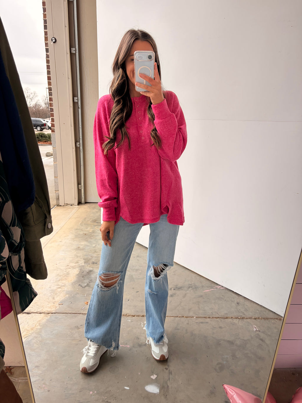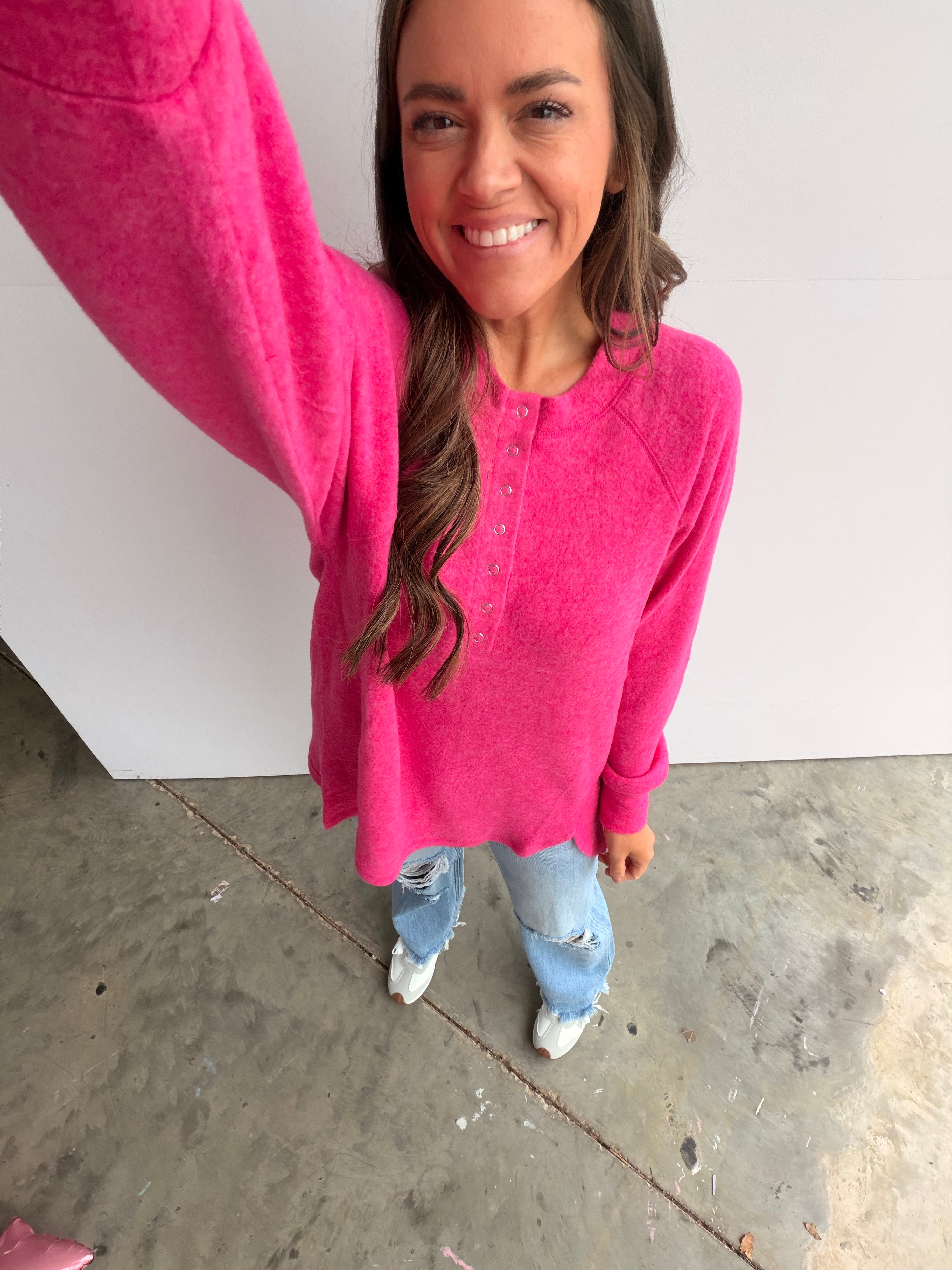 - Brushed hacci knit fuzzy henley