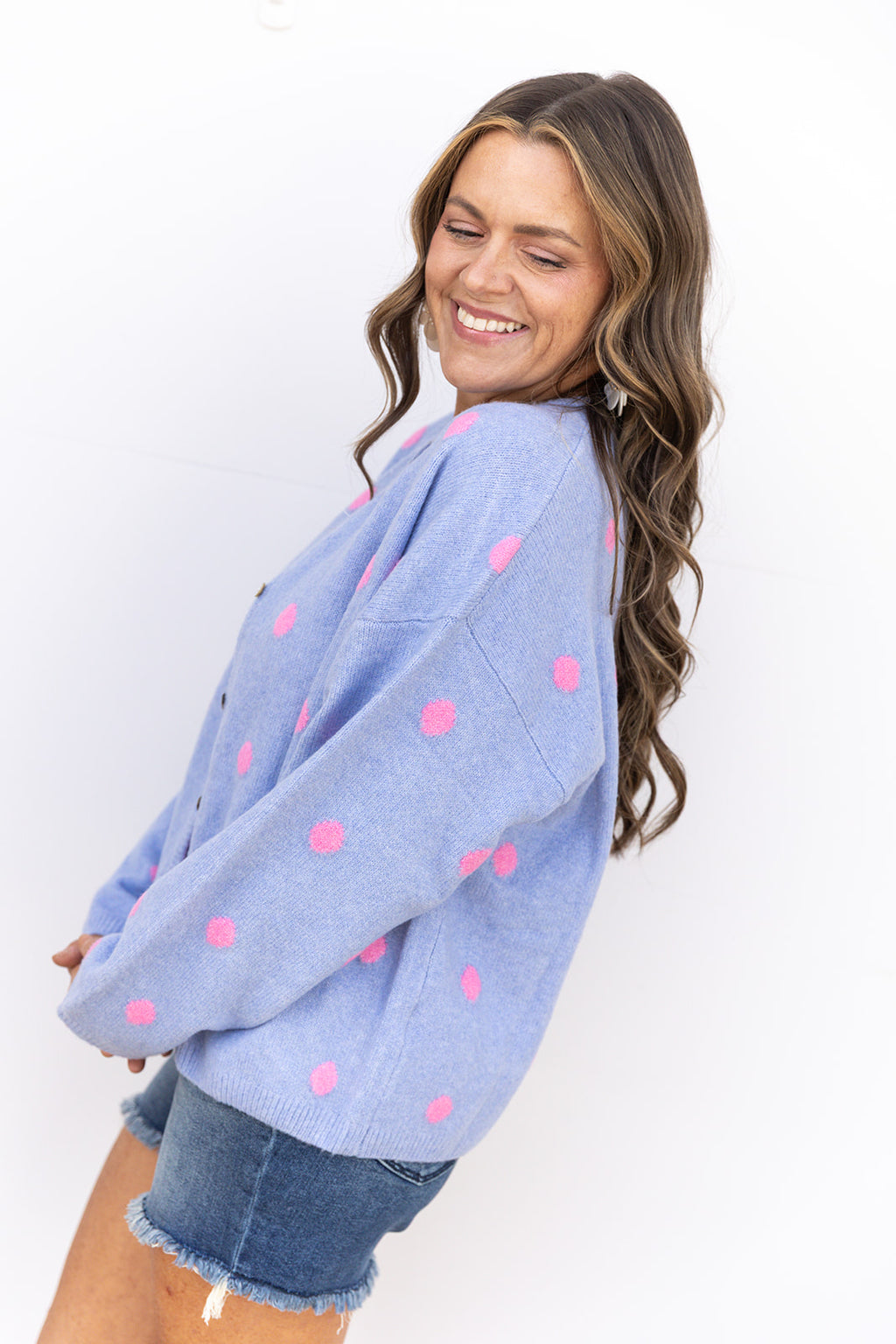 Choosin' Texas Cardigan - Pink/ Blue Poolka Dot
