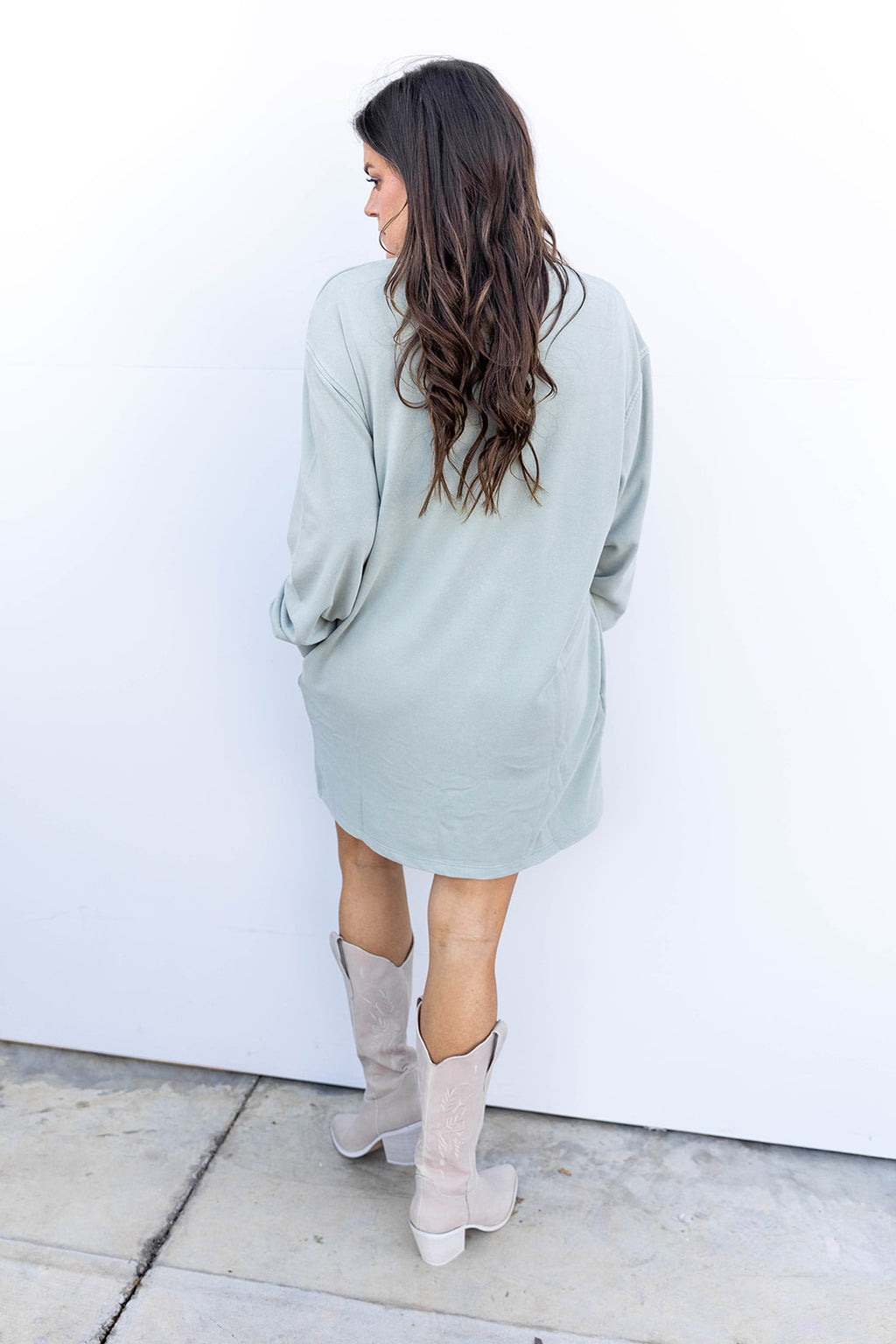 Luxe Lounge DressOur Luxe Lounge Dress in Sage Green is the ultimate combination of comfort and style. Made from a soft and cozy tshirt/sweatshirt material, this dress is perfect for a day of lounging or running errands. The versatile sage green color and relaxed fit make this dress a must-have addition to your wardrobe.