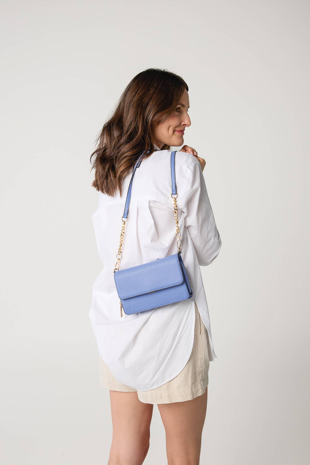 Lauryn Flapover Crossbody w/ Chain Strap: Porpoise