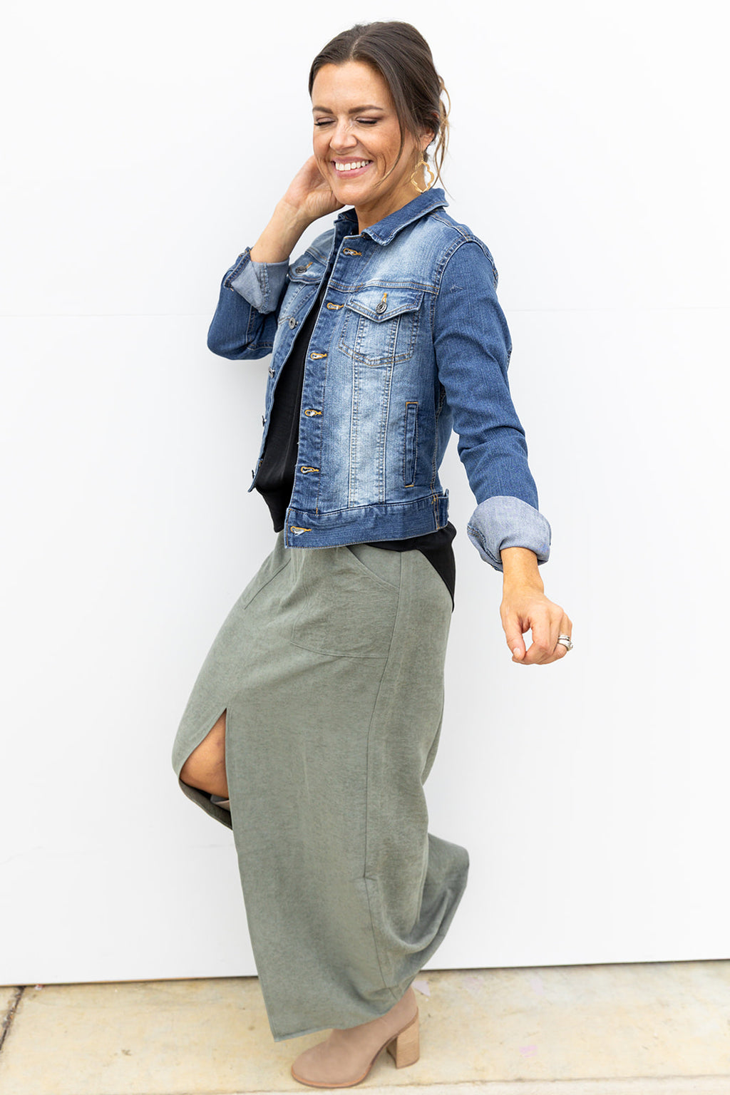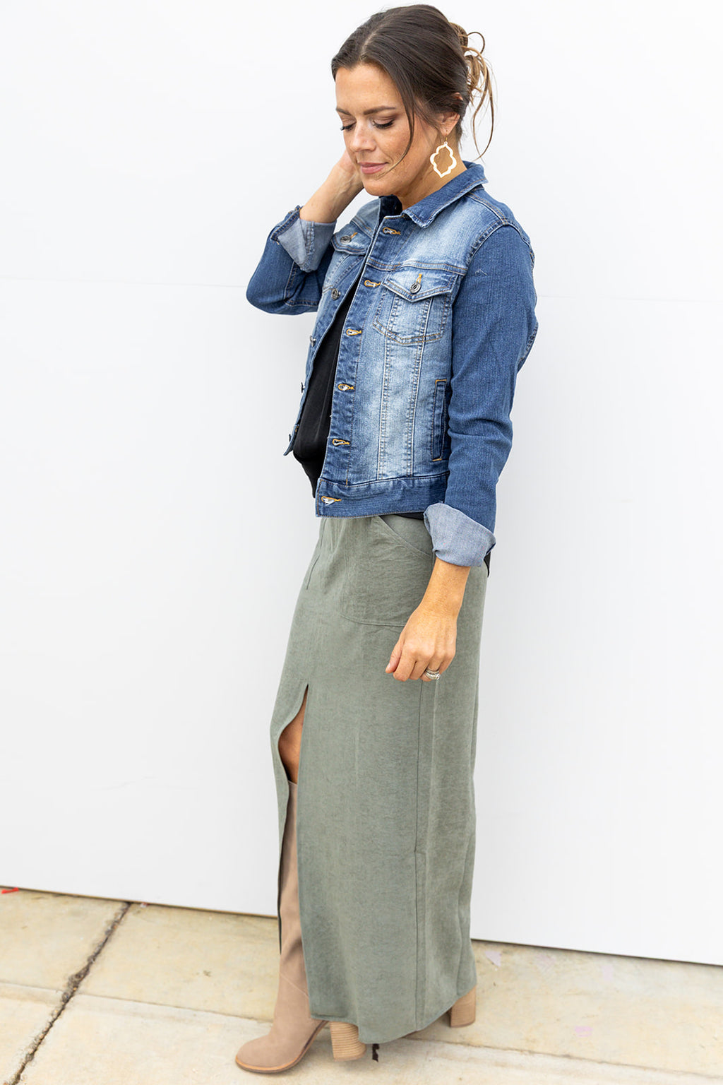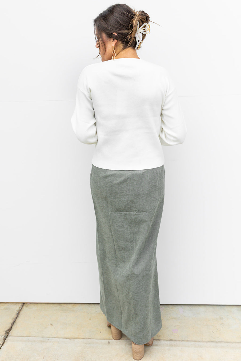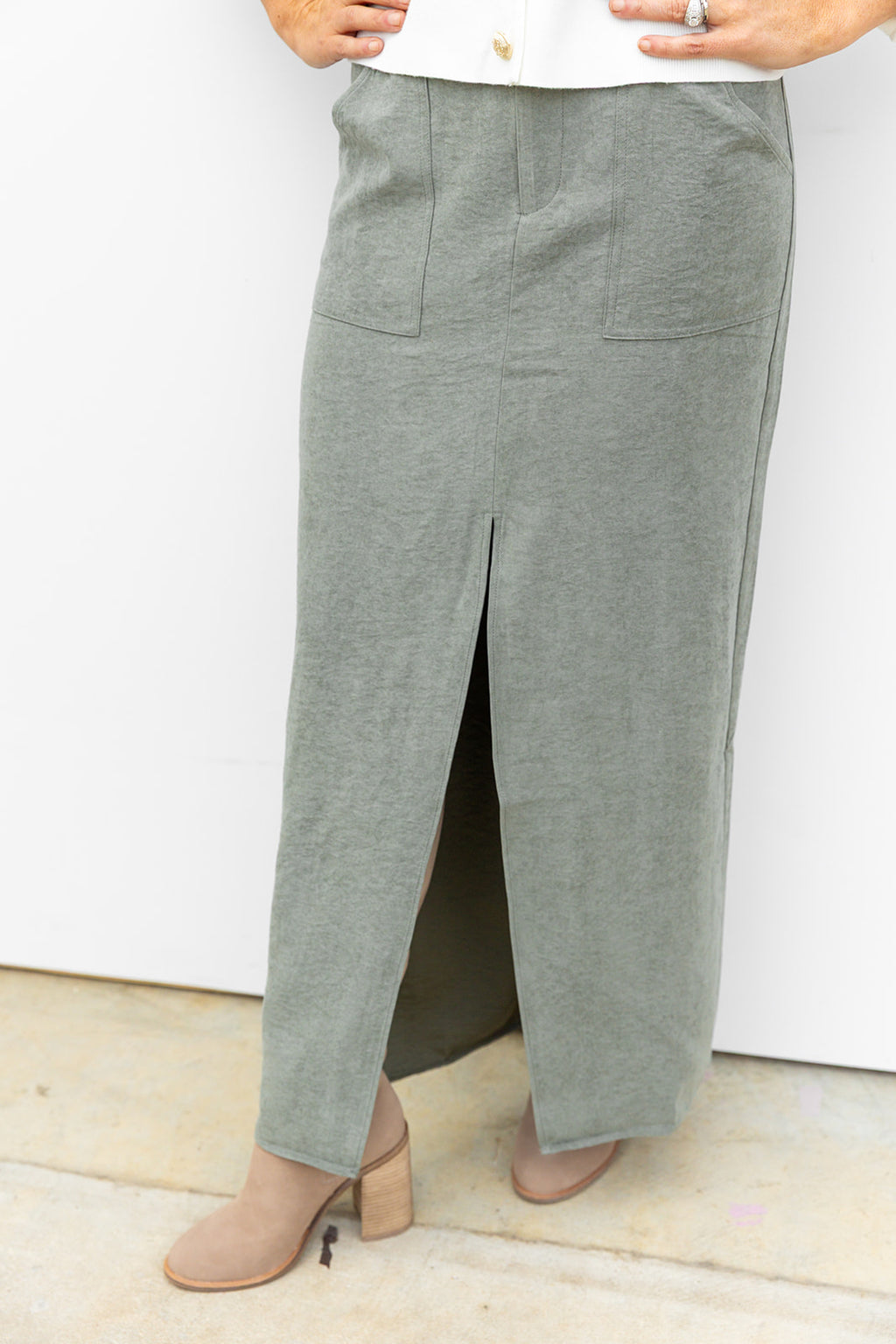 Olive You Suede midi Skirt