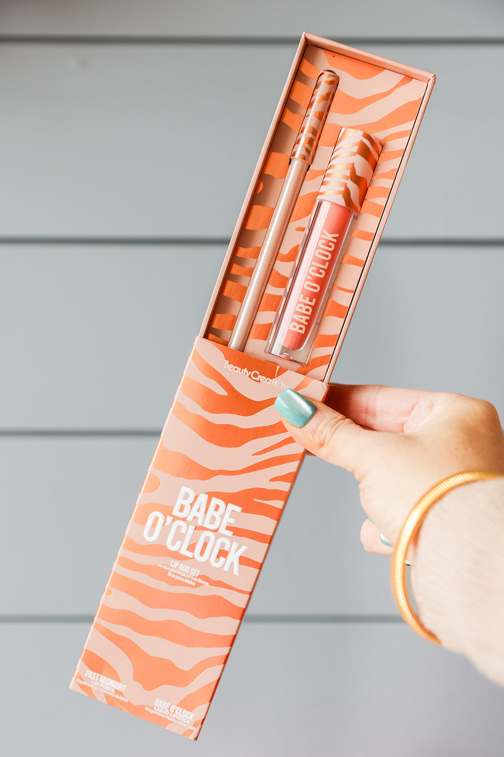 Beauty Creations LD1 Babe O'Clock Lip Duo Set. A matching rose pink liquid matte lipstick and a deep salmon gel lip liner combo with intense pigmentation and lightweight comfort. Non- drying formula that applies creamy onto lips. 2 pcs in each kit.