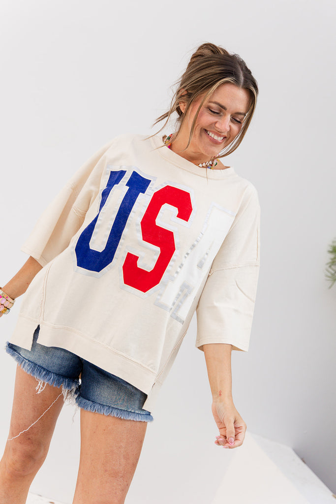 Courtesy Of The Red, White, & Blue Blouse - Baby Blue