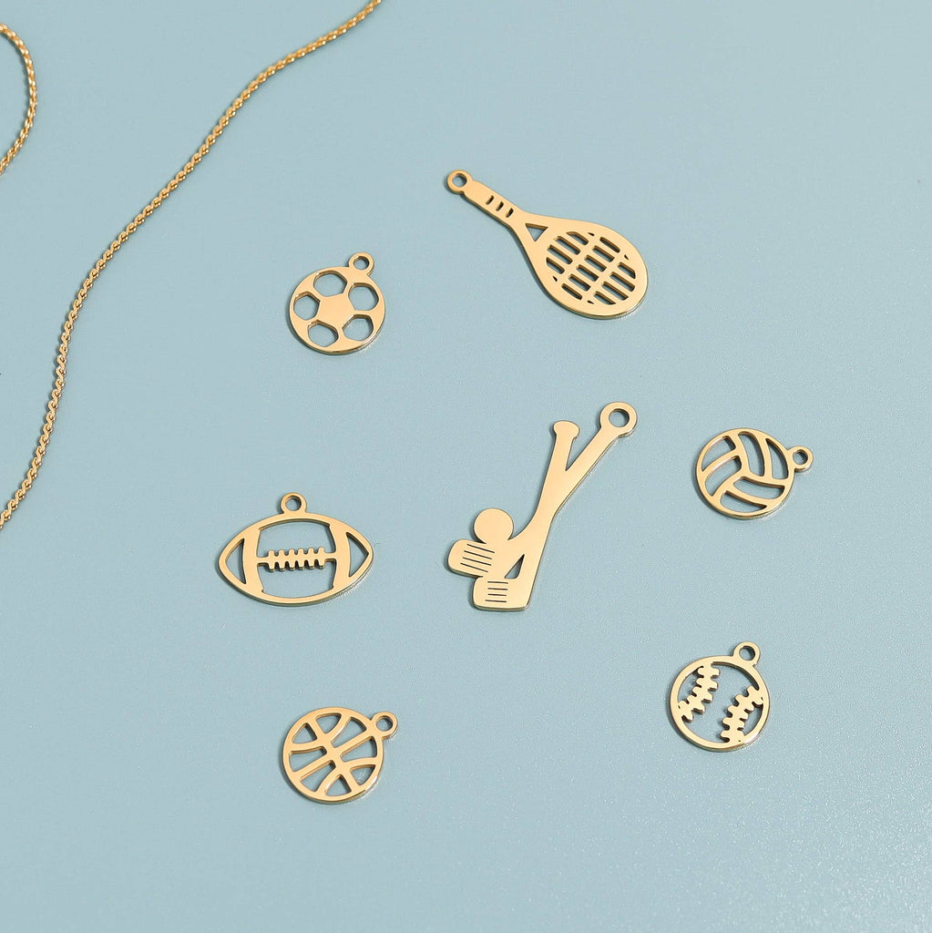 18K Gold PVD Stainless Steel Baseball Charm: Gold
