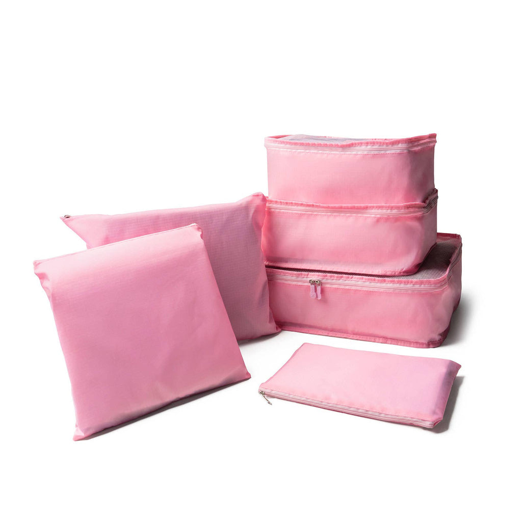 En Route® Travel Cube Set Set of 6 lightweight packing cubes & travel bags Mesh tops let you view contents before unzipping Set includes: 1 large cube with handle 2 medium cubes with handle 1 medium laundry pouch 2 small laundry pouches Merchandising