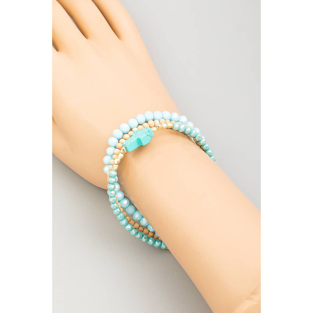 This bracelet introduces a stunning stone cross charm beaded set style. Savor the craftsmanship that goes beyond the ordinary, as this accessory effortlessly captivates attention.