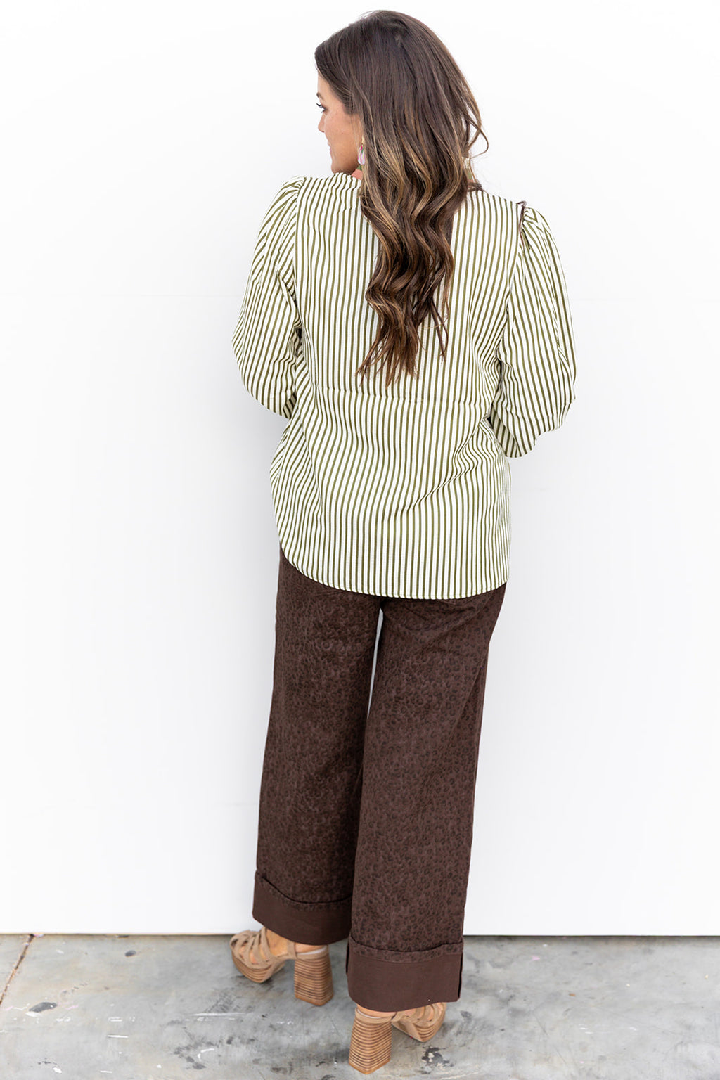 Olive green striped blouse